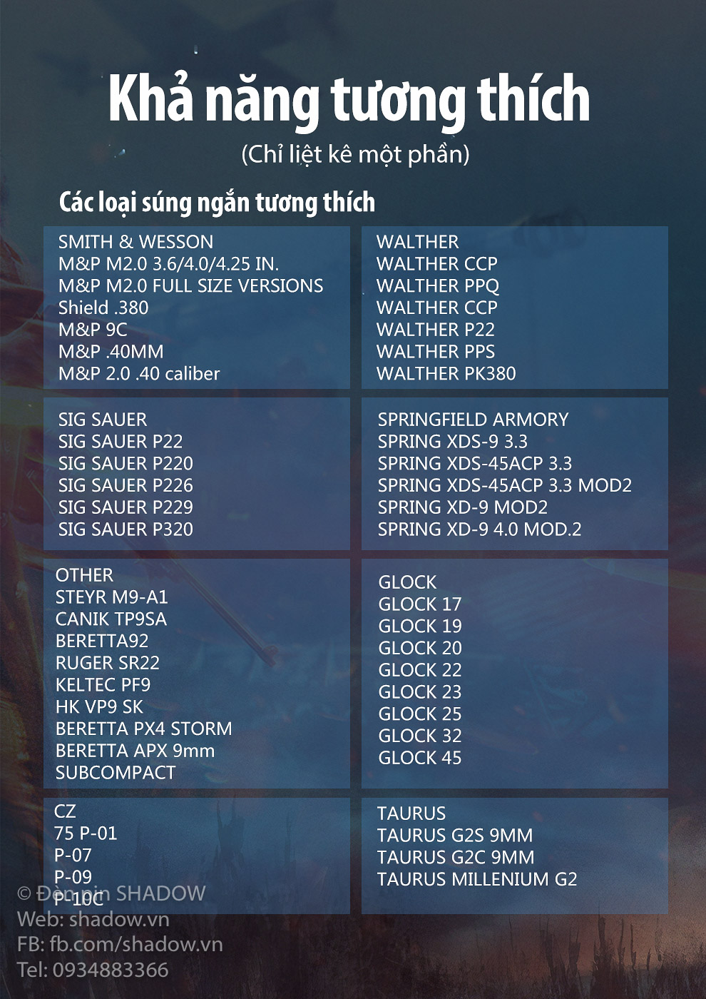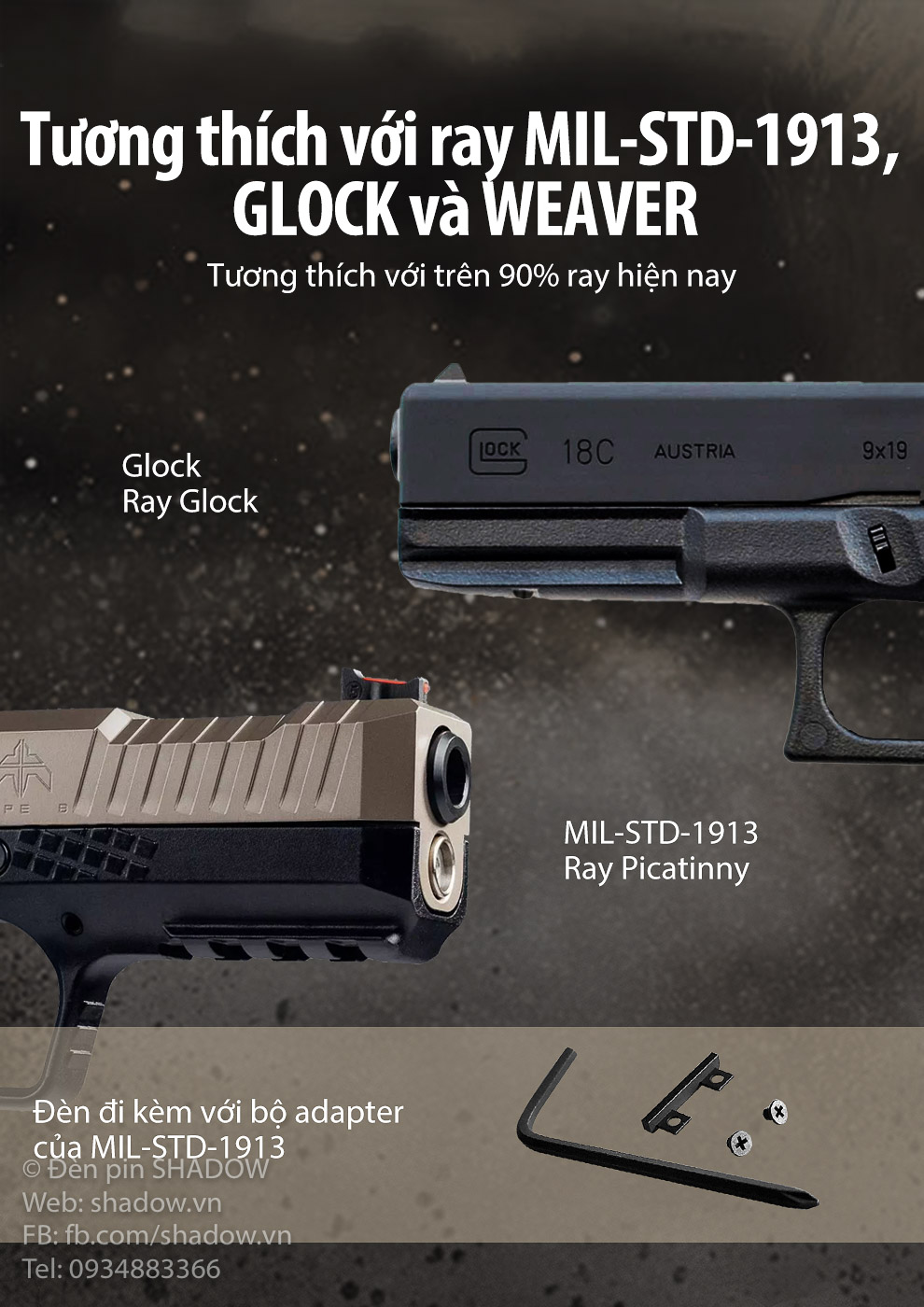 Tương thích với ray MIL-STD-1913, Glock và Weaver