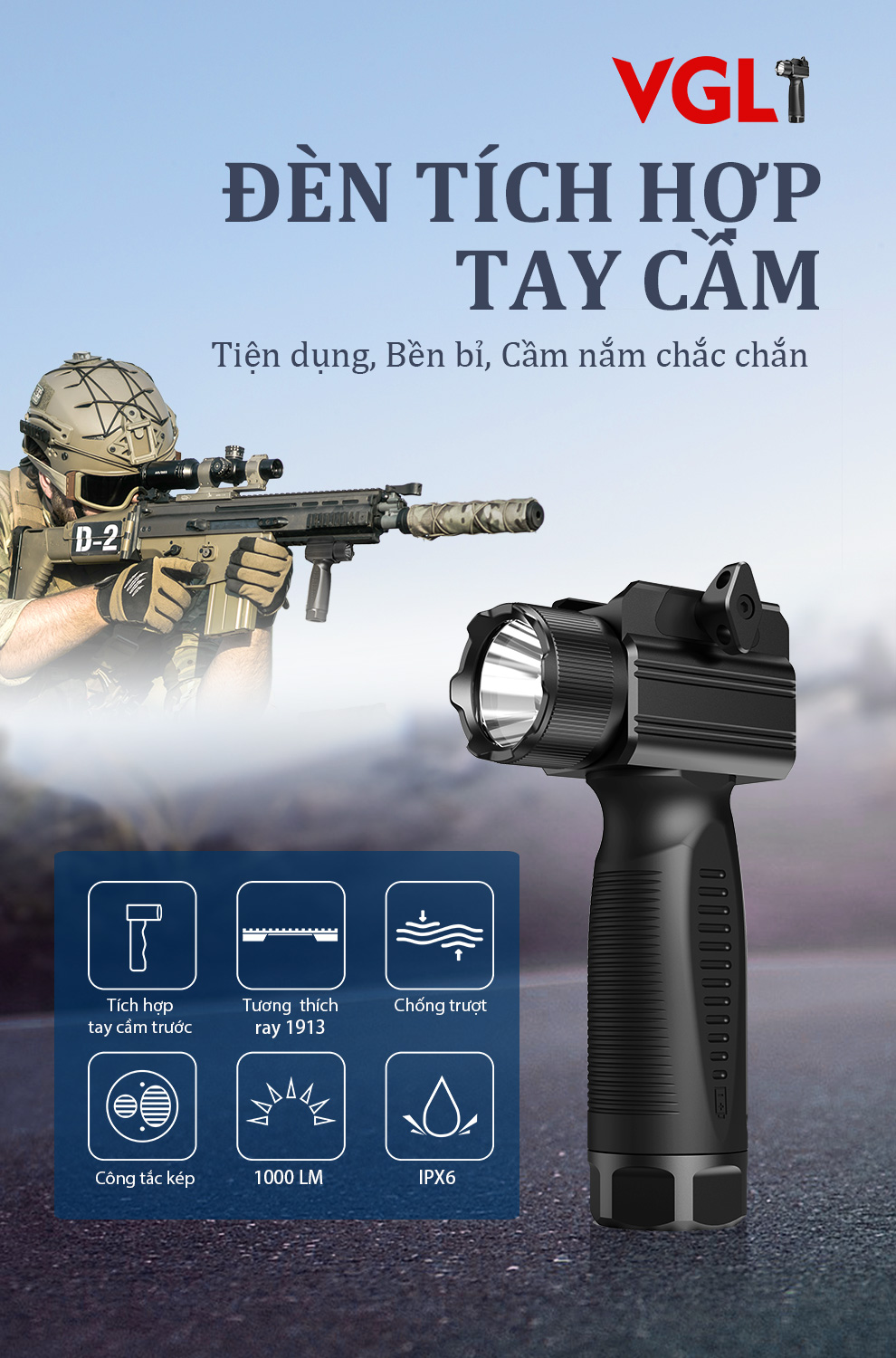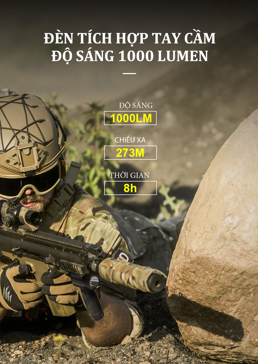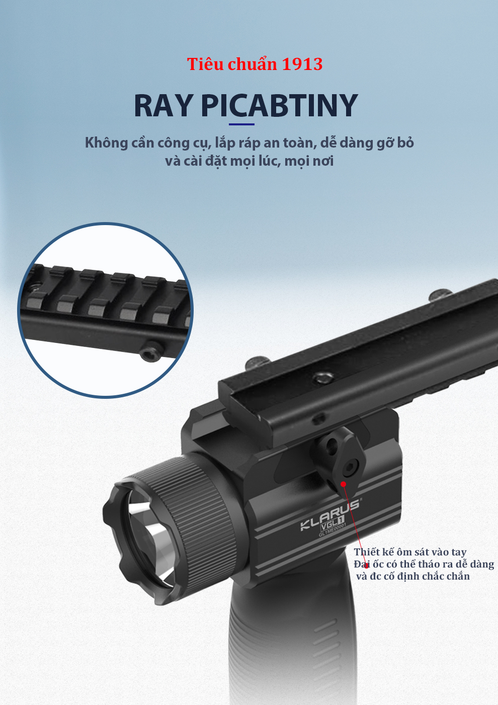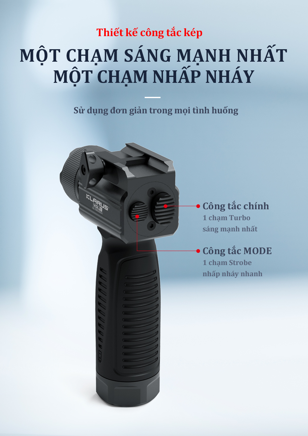 Đèn pin gắn s-ú-n-gg độ sáng 1.000 lumen với chức năng strobe, kiêm báng trước KLARUS VGL1 sử dụng dễ dàng, tiện dụng