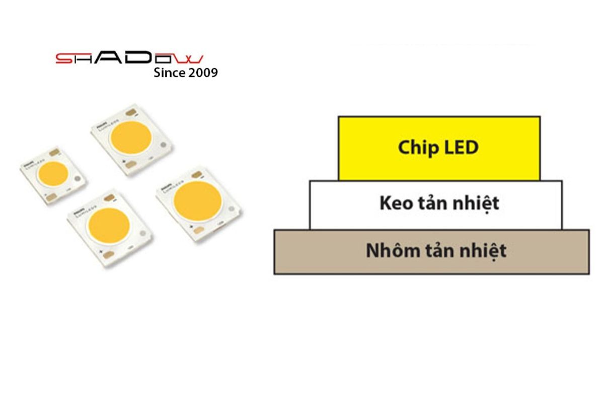 Nhôm tản nhiệt: LED COB sử dụng loại nhôm kỹ thuật giúp nâng cao khả năng tản nhiệt. Cấu trúc này còn bảo vệ an toàn cho chip LED, hạn chế các tác động từ môi trường bên ngoài.