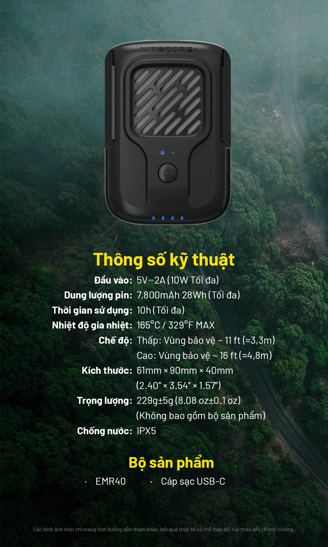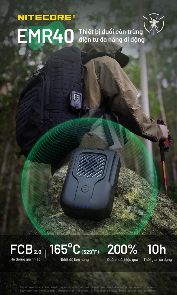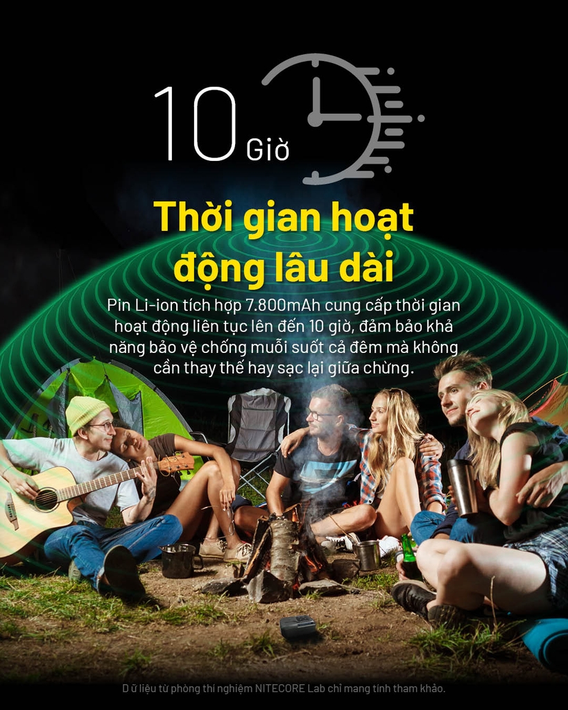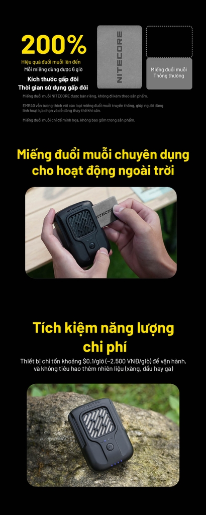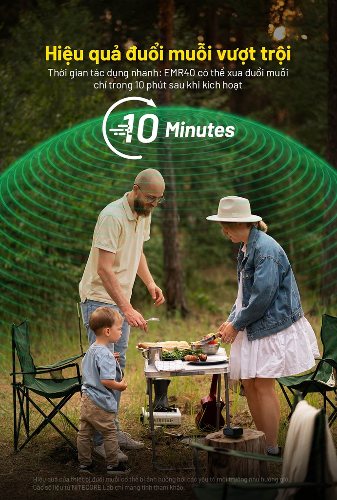 NITECORE EMR40 – Máy đuổi muỗi di động 10.000mAh, vùng bảo vệ 16ft/11ft, FCB 2.0 165°C, dùng 10 giờ, IPX5 cho camping – dã ngoại
