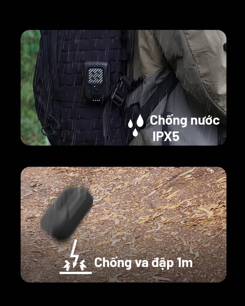 • Độ bền: IPX5 chống nước; chịu va đập 1m.