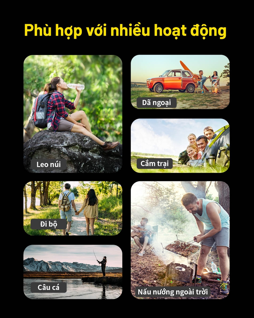 • Sử dụng tại sân vườn, ban công, resort, khu cắm trại, bãi câu…