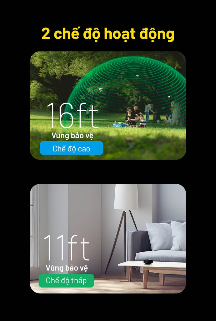 • Low Mode – vùng bảo vệ ~11 ft (≈3,5 m).