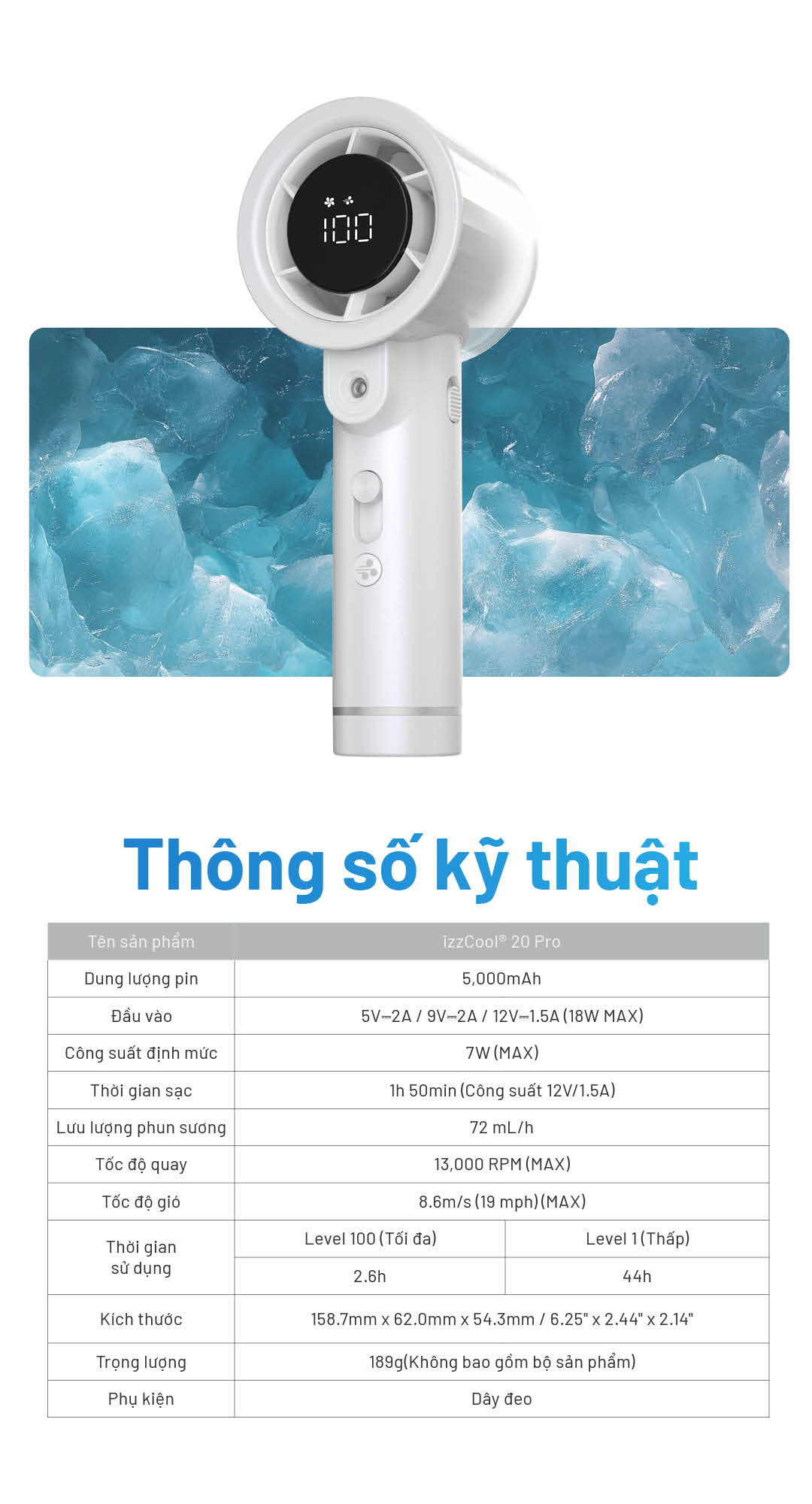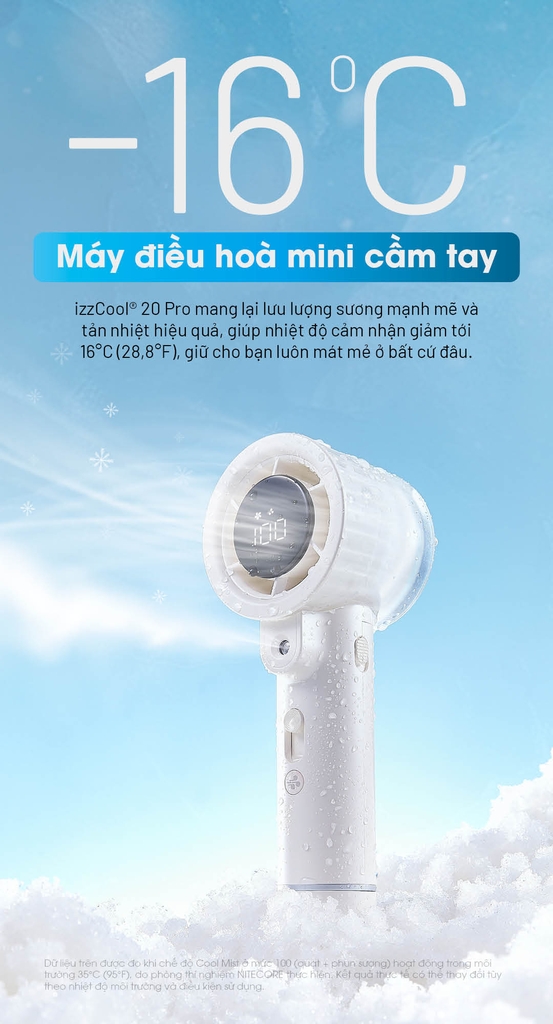 Nitecore izzCool™ 20 Pro là chiếc quạt hơi nước cầm tay thế hệ mới, tích hợp công nghệ làm mát bằng nước với thiết kế bình nước vòng đầu tiên trên thế giới, mang đến hiệu quả làm lạnh vượt trội. Với khả năng làm mát -16°C, pin dung lượng lớn 5000mAh và thời gian hoạt động tối đa 44 giờ, sản phẩm là người bạn đồng hành hoàn hảo trong mùa hè, khi đi du lịch, dã ngoại hay sử dụng hàng ngày.
