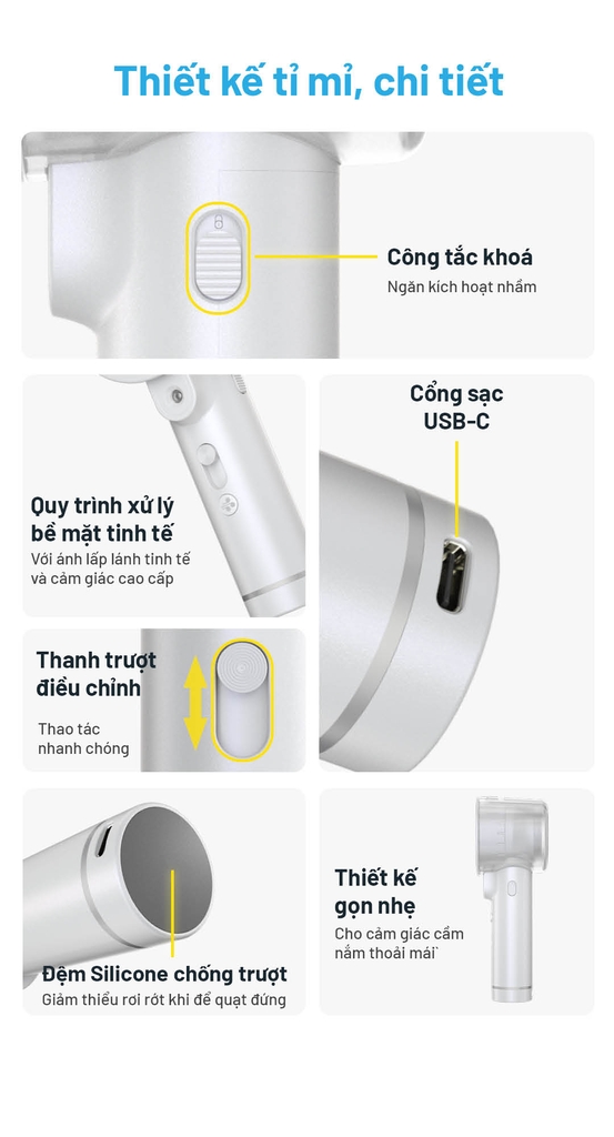 - Chi tiết tinh tế: công tắc chống kích hoạt nhầm, lớp phủ ngọc trai sang trọng, nút trượt dễ thao tác.