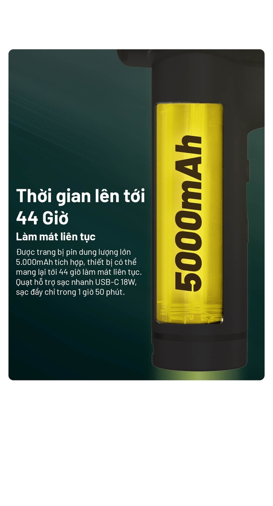 - Pin 5000mAh – sạc USB-C, hoạt động liên tục tối đa 44 giờ.