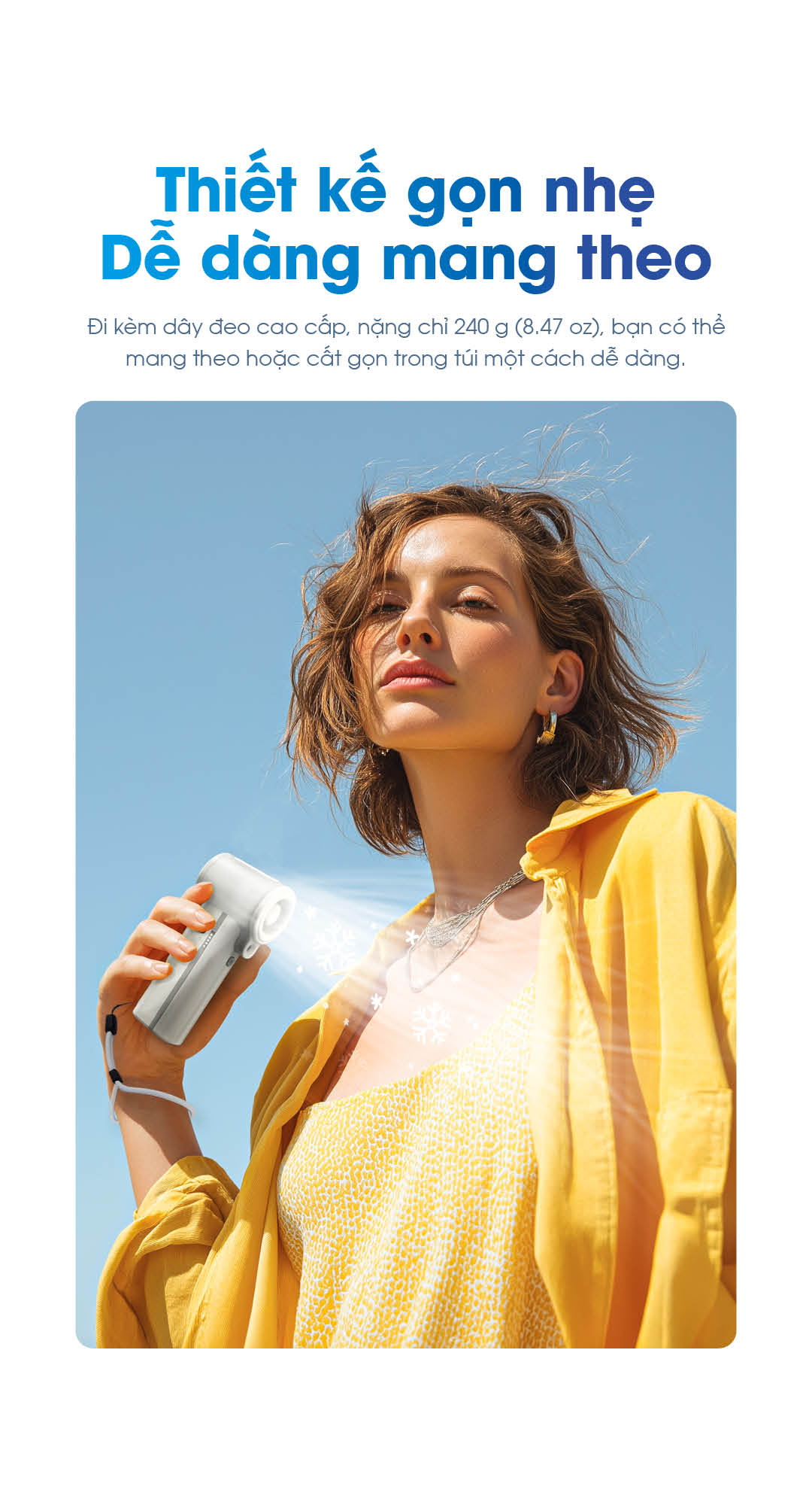 - Nhẹ 240g, kèm dây đeo – dễ mang theo, dùng cả ngày.