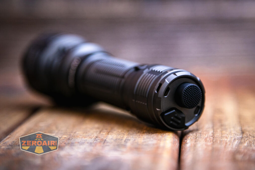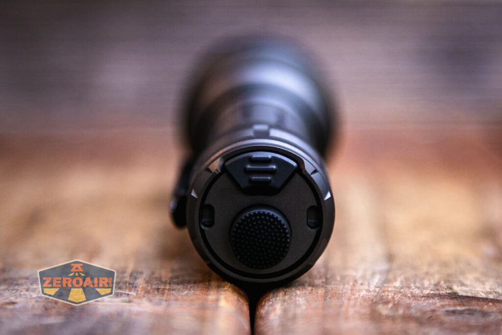 Giống như các phiên bản đèn tác chiến ra đời trước là Acebeam P16 thì Acebeam P17 Defender cũng có công tắc trên đuôi. Một là nút là công tắc chính để dùng lực chính với chức năng là ON/OFF, nút lẫy còn lại sẽ bấm nhẹ hơn và hỗ trợ các chế độ sáng phụ.