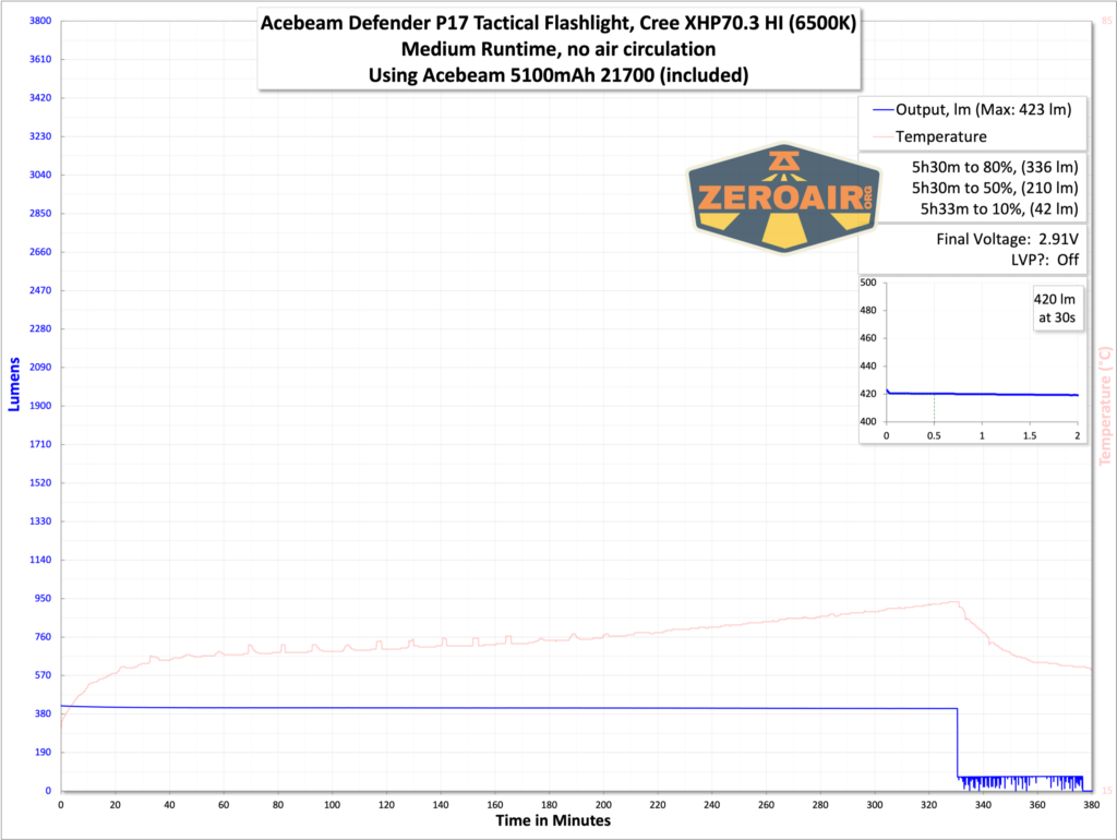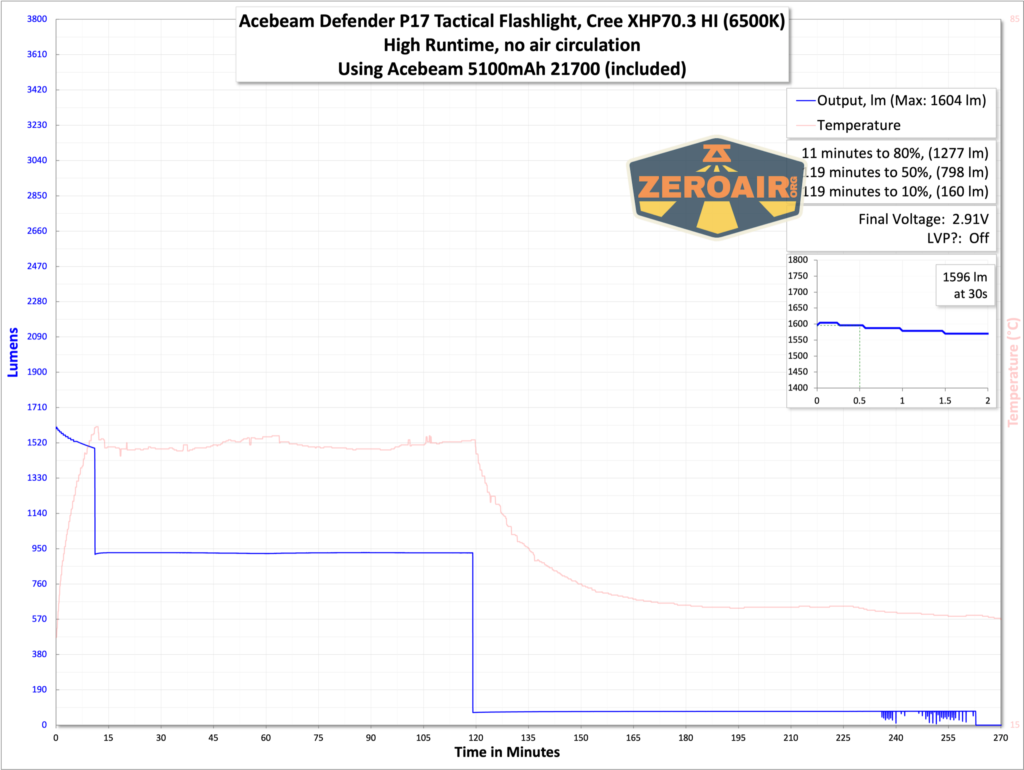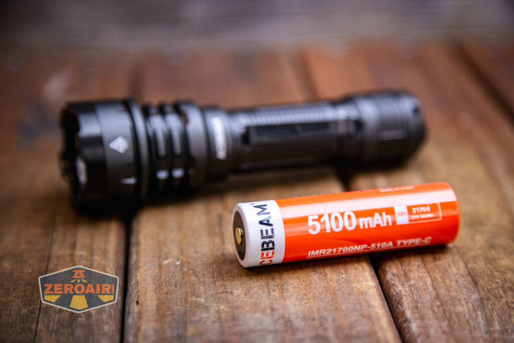 Cấp nguồn cho đèn Acebeam Defender P17 là một pin lithium-ion 5100mAh 21700.