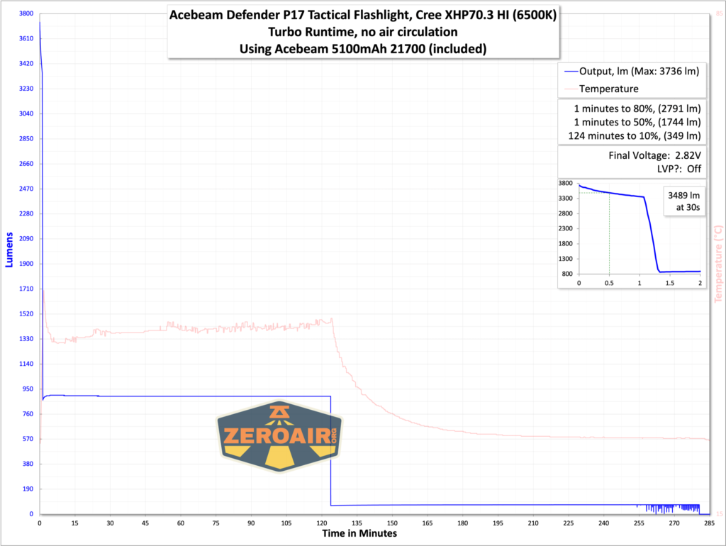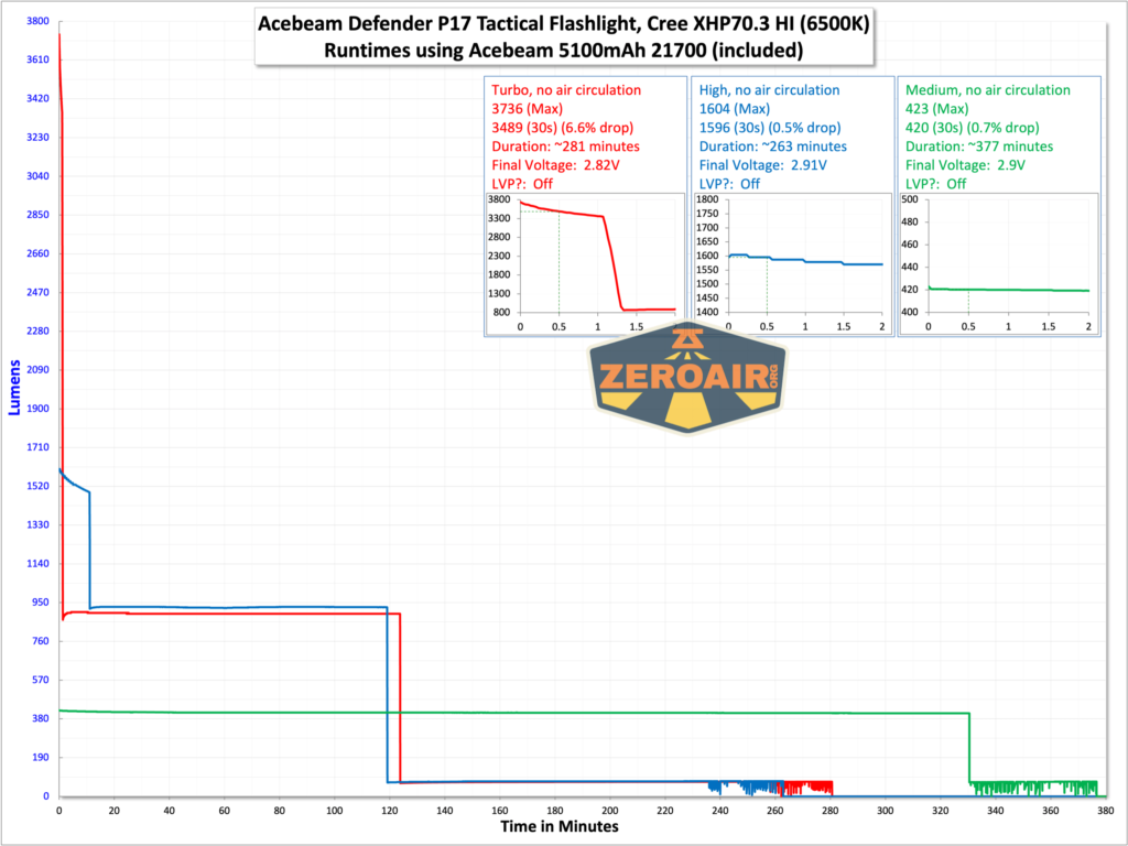 Thí nghiệm đo thời lượng pin của 3 nấc sáng TURBO, HIGH, MEDIUM