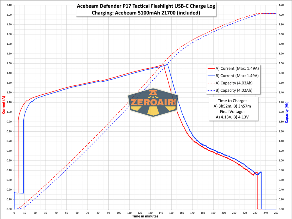 Pin đèn P17 được lắp theo cách thông thường - cực dương về phía đầu đèn. Đèn có tính năng bảo vệ điện áp ngược, đầu pin có tích hợp cổng sạc USB C