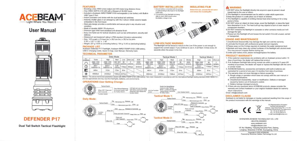 Bộ sản phẩm đầy đủ của Acebeam P17 Defender