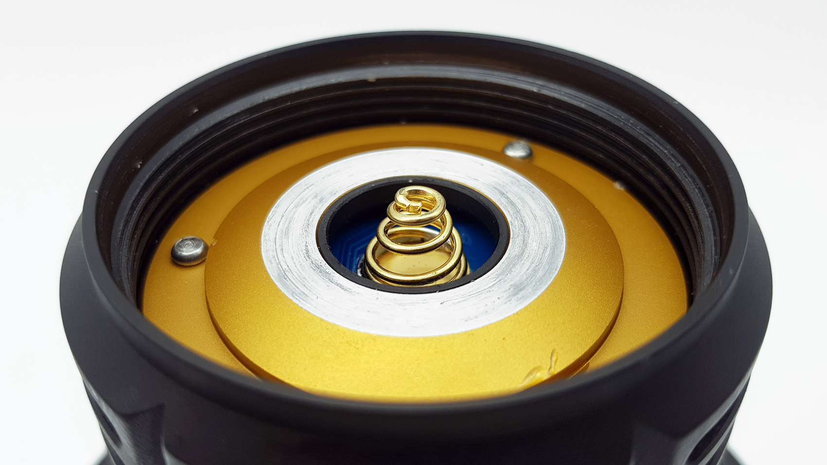 Công tắc đèn thiết kế nổi, kích cỡ vừa phải, thao tác bấm dễ dàng kiểm soát các giao diện của đèn. Đèn pin có khóa điện tử  (bằng cách bấm giữ công tắc 5 giây) và khóa cơ bằng cách nới lỏng phần đuôi. Nút bấm nhẹ nhẹ nhàng, được kích hoạt ở áp lực phù hợp.