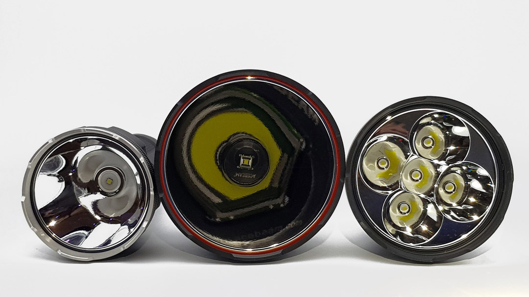 Chóa phản xạ của hai loại đèn, bên trái là K75, bên phải là BLF GT.
