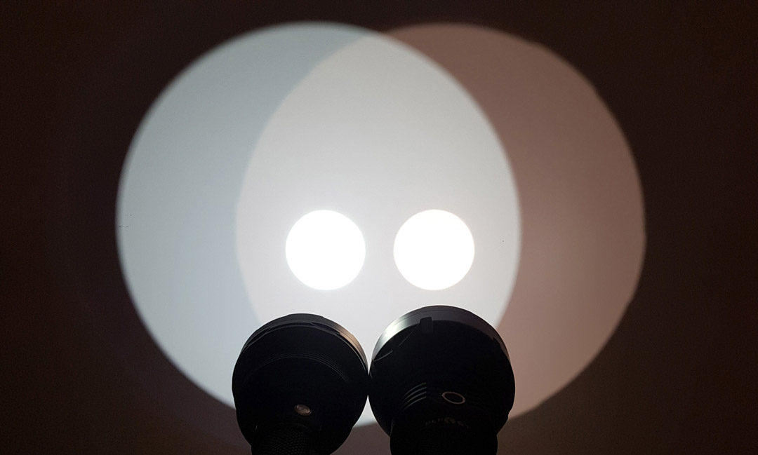 Ánh sáng của Acebeam K75 rất mạnh và rõ nét ở điểm giữa hotspot, vùng sáng rộng, màu trắng tuyệt đẹp, nhiệt màu không dưới 6500 độ K, không pha tạp màu.