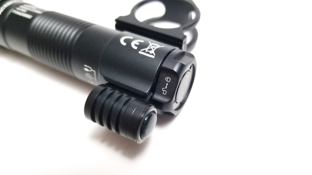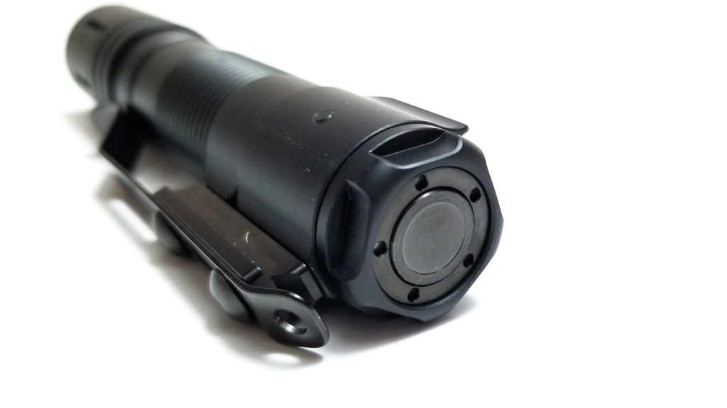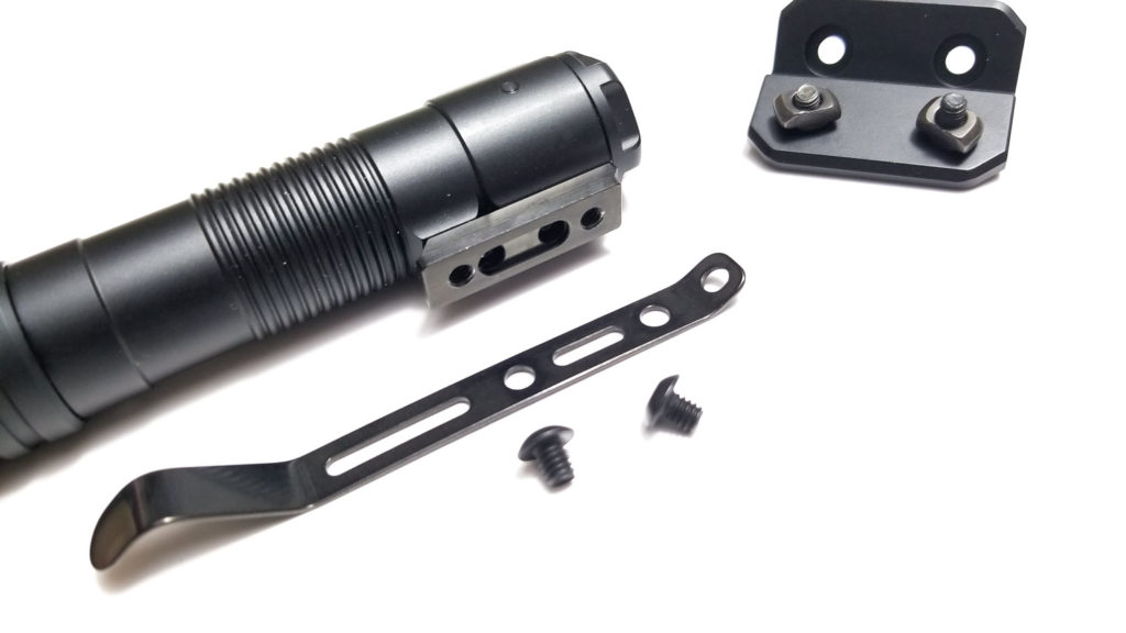 Phần rãnh dọc nhô lên ở phía sau đèn là điểm mấu chốt nếu người dùng cần sử dụng đèn cho thiết bị WML. Cùng với kẹp túi và vòng tá-c ch-i-ến, các ngàm M-LOK hoặc Picatinny tùy chọn được gắn ở đây. Kẹp và ngàm được gắn bằng 2 vít đầu nắp lục giác, có thể tháo ra bằng các thanh lục lăng đi kèm (bộ sản phẩm có đi kèm sẵn 2 vít dự phòng). Giá đỡ được giữ bằng hai chốt Torx và một vít Philips.