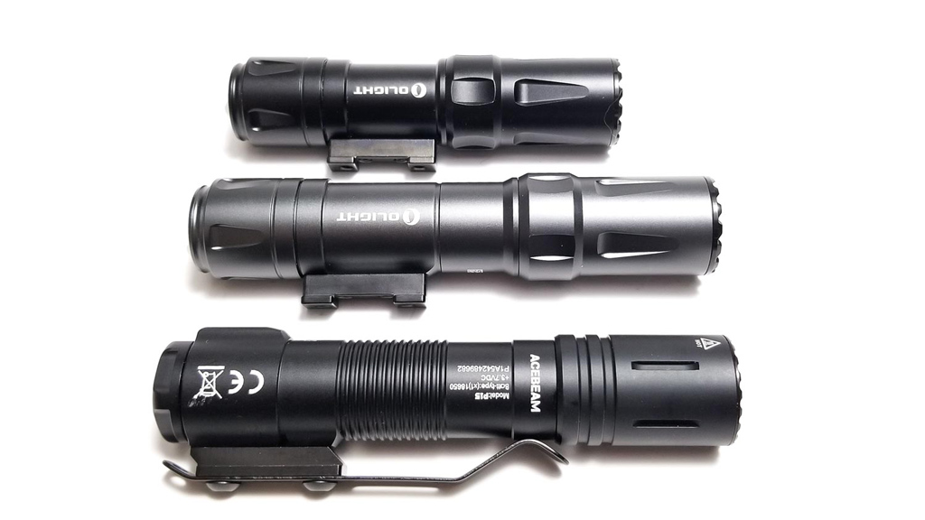 Ảnh 1 từ trên xuống dưới: Olight Odin Mini, Olight Odin, Acebeam P15 Defender.
