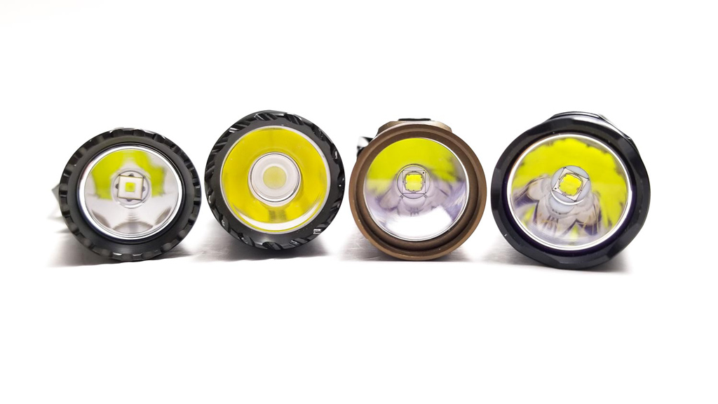 Ảnh 5 từ trái sang phải: Acebeam P15, Olight Odin, Thrunite BSS V4, Fenix PD36 Tac.
