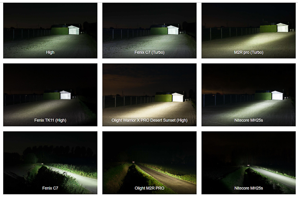 So sáng chùm sáng của Fenix C7 với các đèn khác