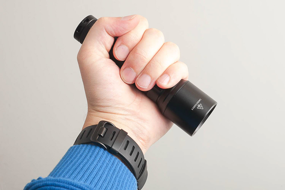 Có nhiều đường vân nhỏ gọn và rất mịn ở xung quanh thân đèn và ở trên nắp đuôi để tháo nắp đuôi. Đây là kiểu gia công và hoàn thiện đặc trưng của Fenix giúp người dùng cầm nắm đèn một cách chắc chắn, v.v. Và đó cũng thường là điều mà các thương hiệu đèn pin nhỏ và mới gặp khó khăn. Họ sẽ chưa thể tiểu tiết được như các thương hiệu đèn lớn.