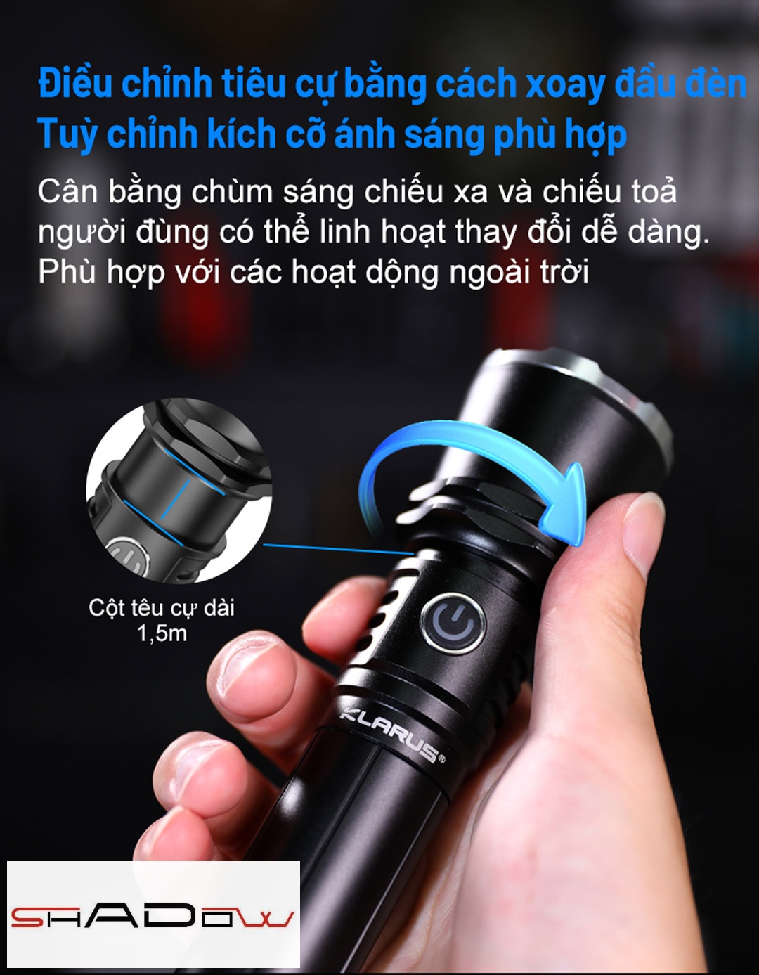 - Tính năng nổi bật của đèn Klarus A3 mà khác biệt so với các đèn cầm tay khác Chức năng zoom linh hoạt dễ dàng điều chỉnh tiêu cự bằng cách xoay đầu đèn, cho phép thay đổi giữa ánh sáng chiếu xa và ánh sáng chiếu tỏa rộng.