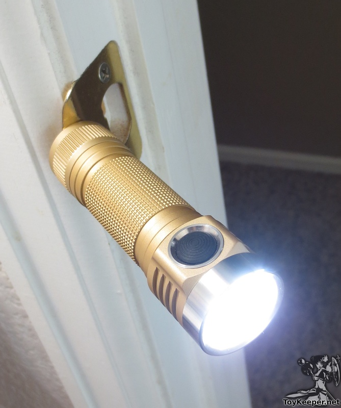 Nam châm đuôi vô cùng tiện lợi, tôi có thể đặt đèn lên mọi bề mặt kim loại. ví dụ tôi đặt nó lên cái chốt cửa.
