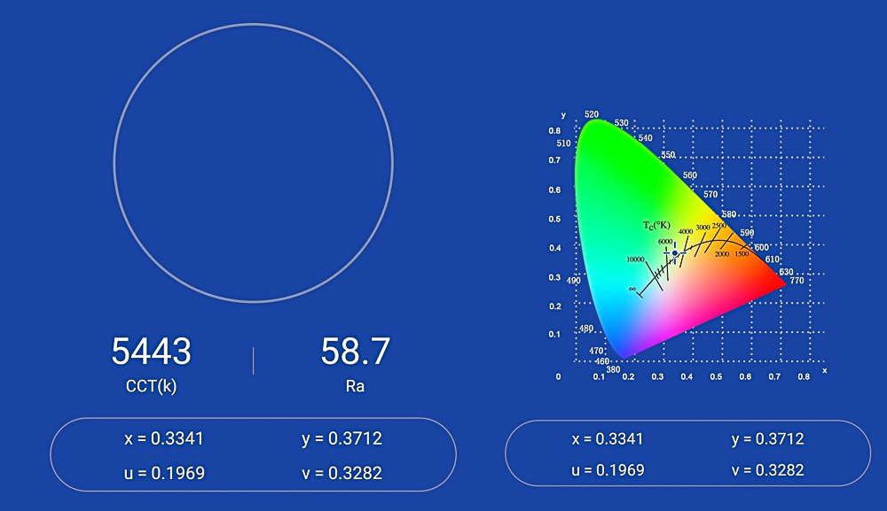 Thử nghiệm được đo bằng máy đo độ sáng Uni-T UT383S trong nhà với khoảng cách là 5 mét, sử dụng pin được sạc đầy.