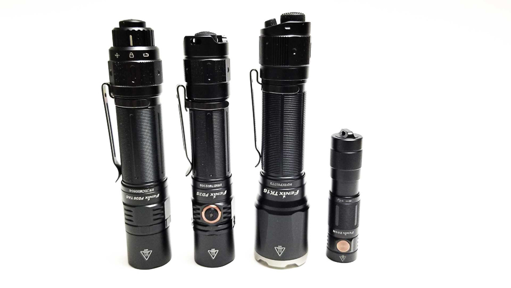 Nhóm 1 từ trái sang phải: Fenix PD35 V3.0, Fenix PD36 Tac, Fenix TK16 V2.0, Fenix E09R