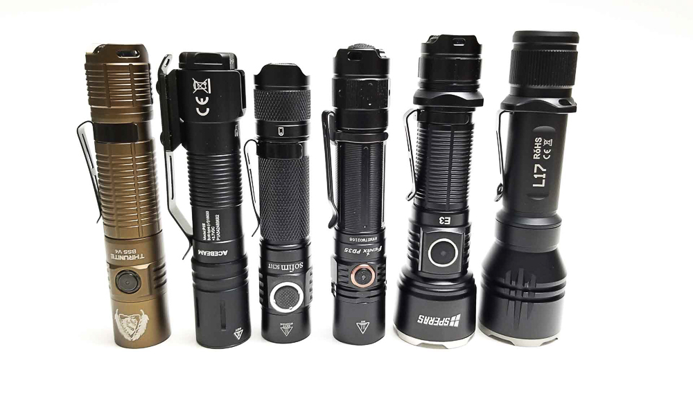 Nhóm 2 từ trái sang phải: Thrunite BSS V4, Acebeam P15 Defender, Sofirn SC31T, Fenix PD35 V3.0, Speras E3, Acebeam L17.