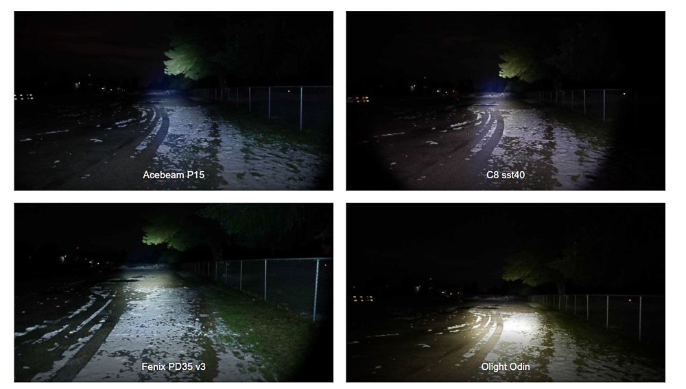 Hình ảnh ngoài trời: Hàng rào có khoảng cách là 40 mét. Thực tế Fenix PD35 V3.0 có một tầm chiếu xa khá ấn tượng mặc dù đèn rất nhỏ gọn, nhờ vào LED SFT40.