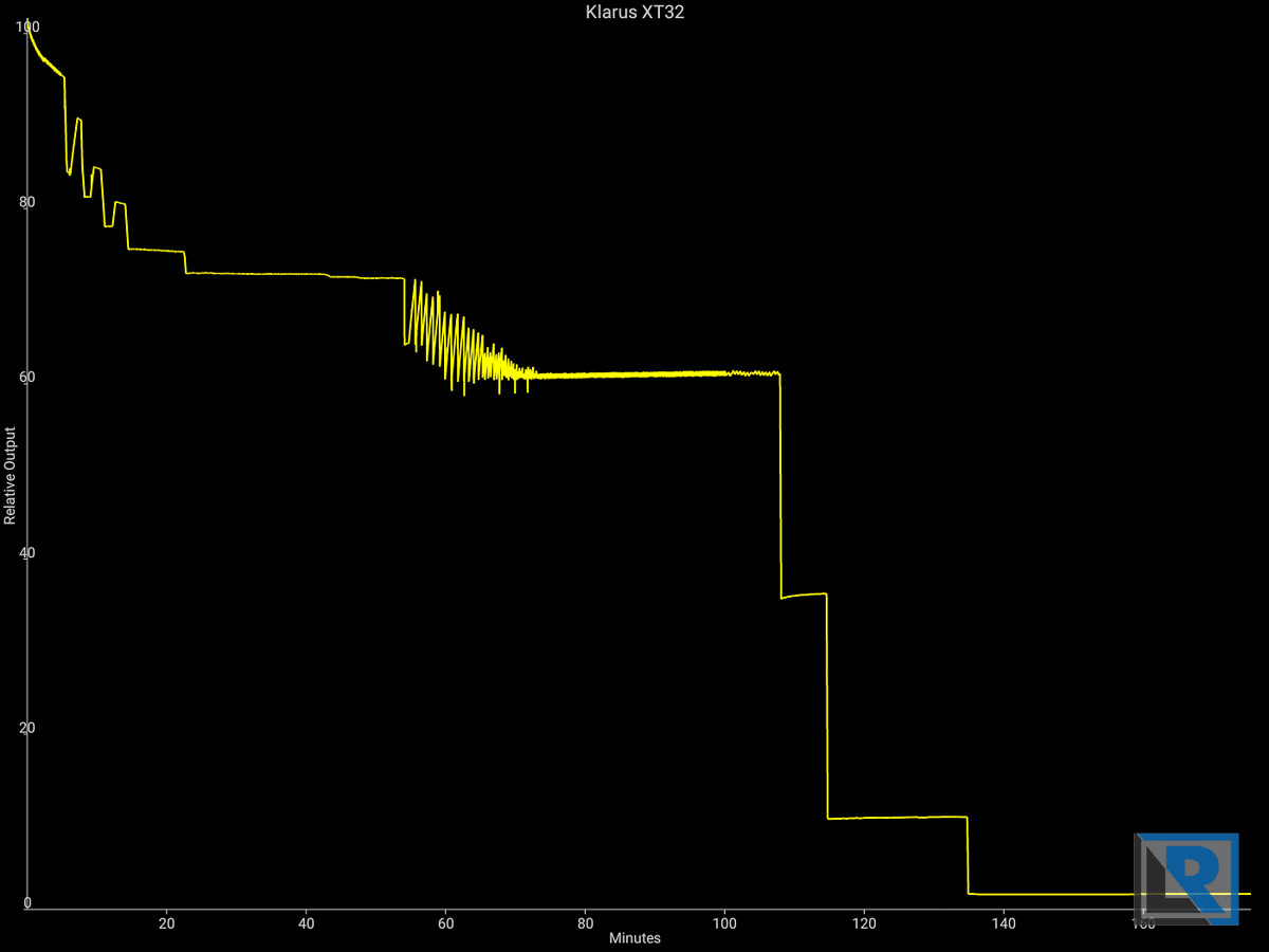 Cây đèn này có chức năng bảo vệ nhiệt độ thông minh ITS- Intelligent Temperature Protection System, và đồ thị độ sáng đầu ra và thời gian chiếu đã thể hiện rõ điều này. Ánh sáng giảm chậm, tới 10 phút vẫn đạt 95 % độ sáng, sau 10 phút, ta có thể thấy độ sáng tăng giảm như hình răng cưa trong 10 phút tiếp theo, và sau đó độ sáng ổn định ở 70%. Khoảng phút 55-110, nhiệt độ đèn ổn định và chức năng quản lý điện áp pin được kích hoạt. Tôi có thểnhận thấy rõ bước giảm độ sáng, khi quay phim trong một đêm lạnh, nhiệt độ 14F