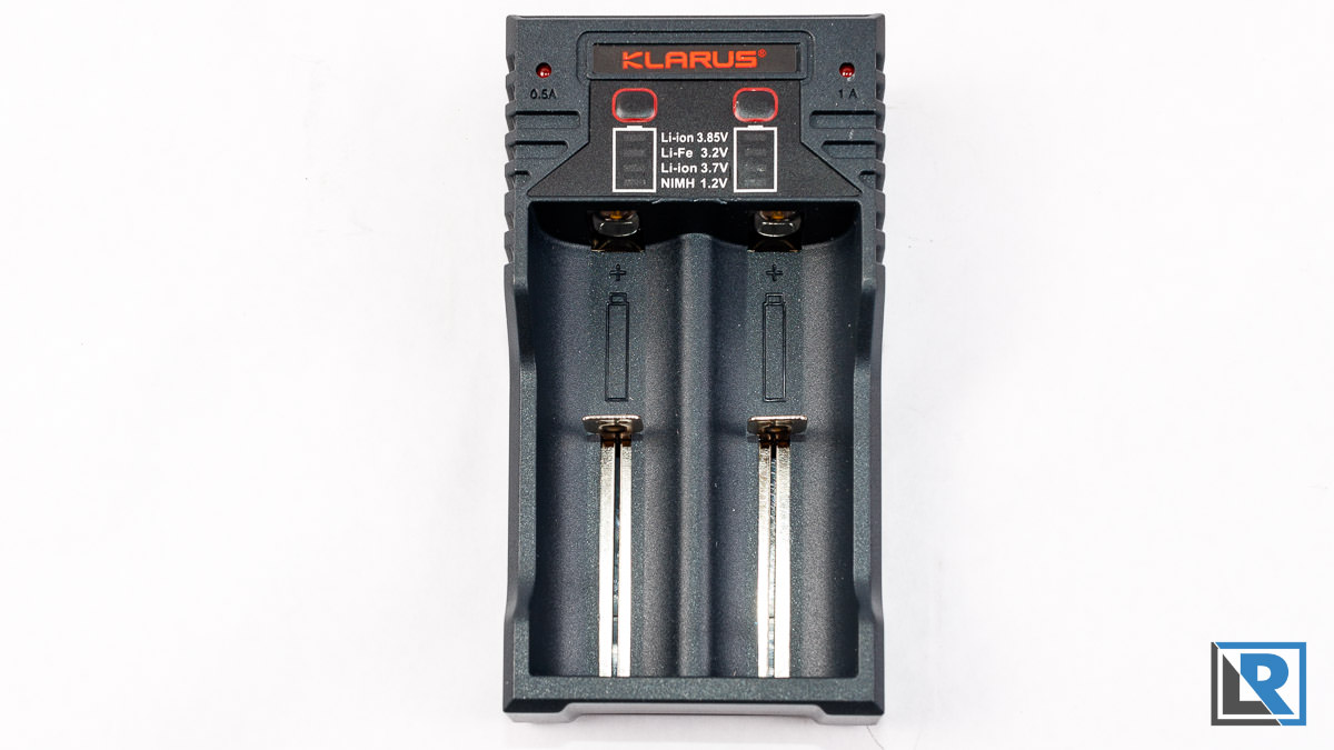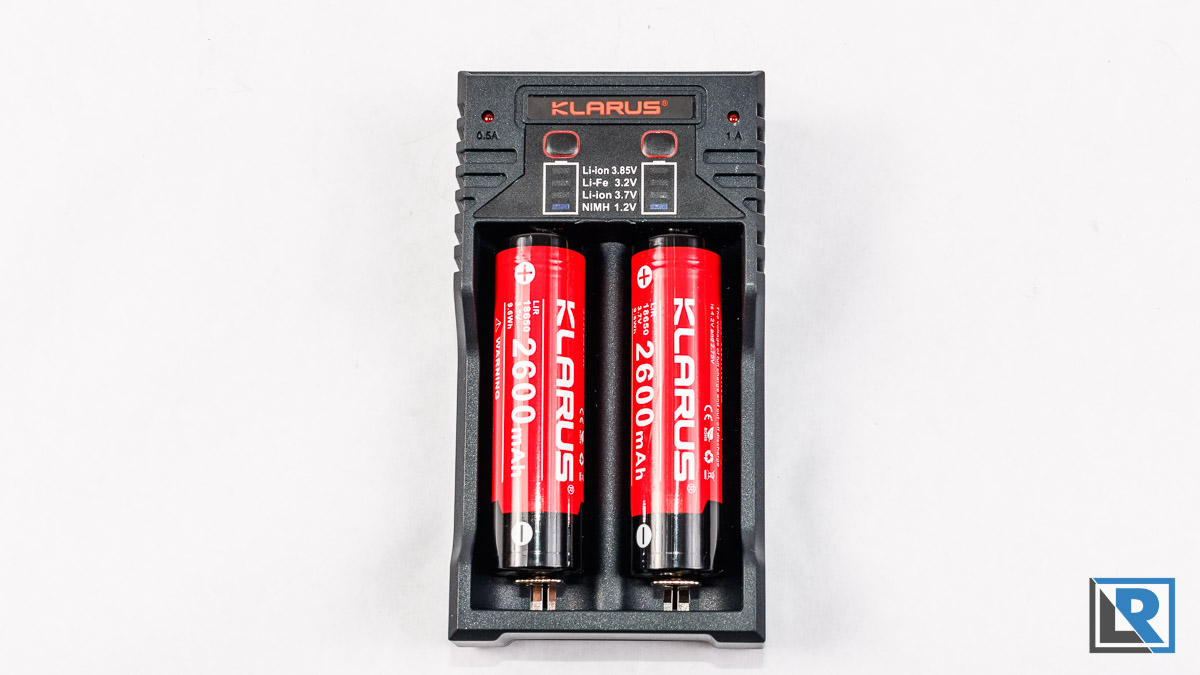 Tôi sạc đôi pin Klarus với bộ sạc đi kèm theo đèn. Điện áp sau khi sạc của hai pin là 4.2V. Tốc độ sạc có thể chỉnh 0.5A hoặc 1A mỗi slot. Sạc này cũng có chức năng xả để làm pin sạc dự phòng. Tuy nhiên trong hướng dẫn sử dụng lại không đề cập đến chức năng này.