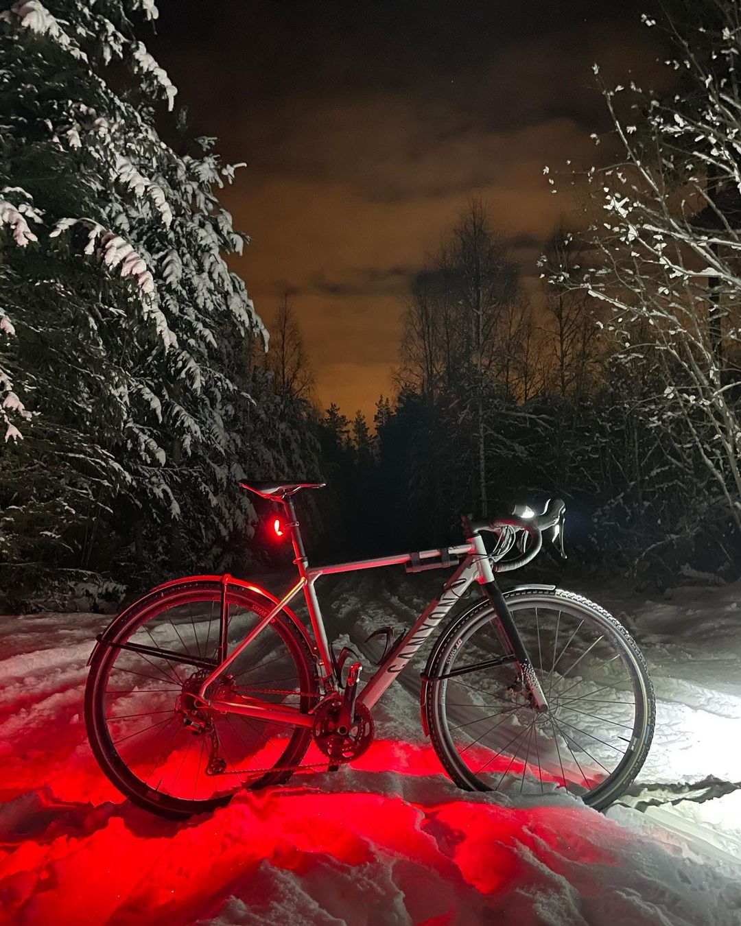 Với độ sáng 200 lumen đèn sáng rực và phủ đỏ cả nền tuyết,