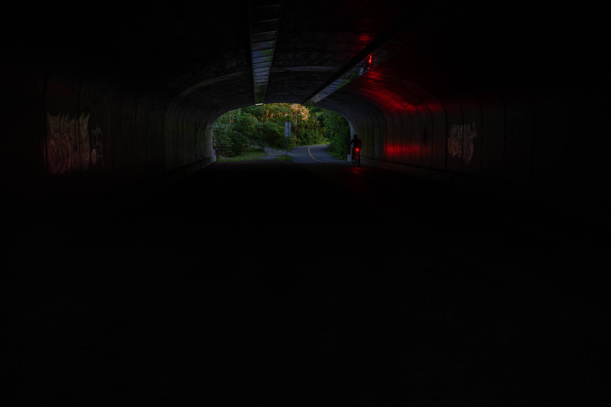 khăn như trong đường hầm lúc hoàng hôn trong khi xung quanh vẫn còn ánh sáng.