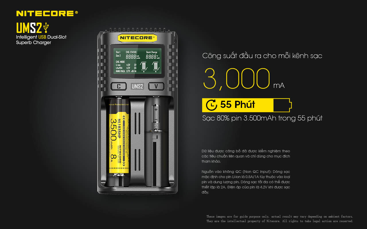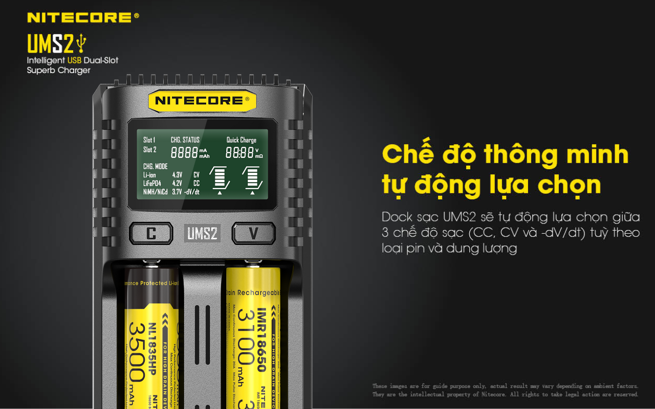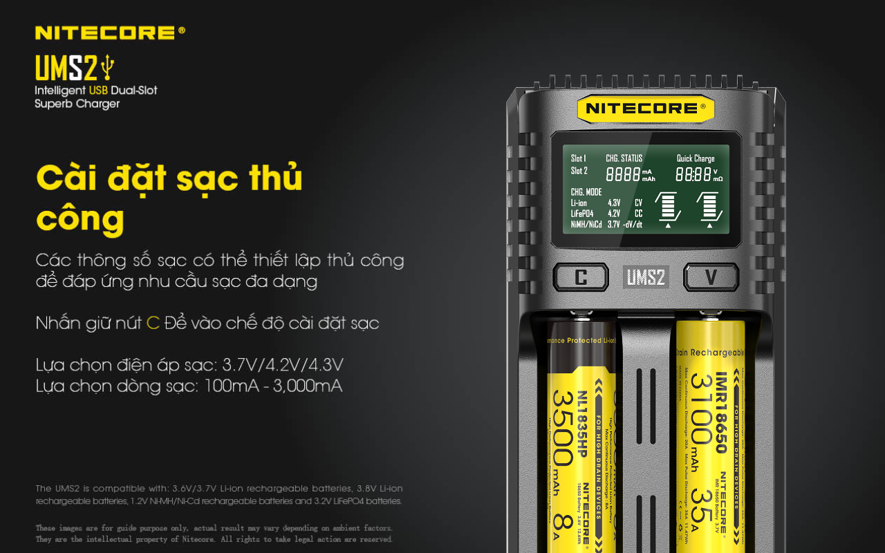 Sạc NITEOCRE UMS2 co thể cài đặt sạc thủ công