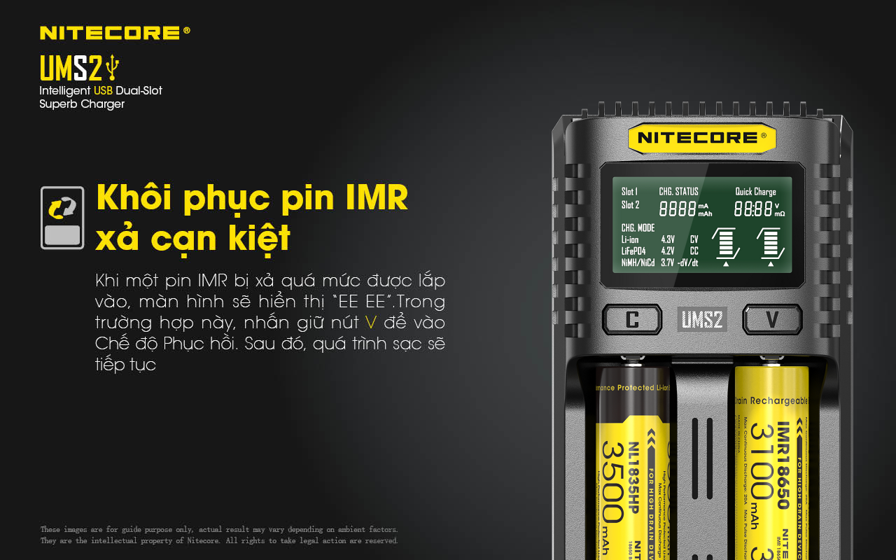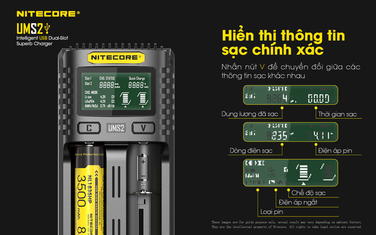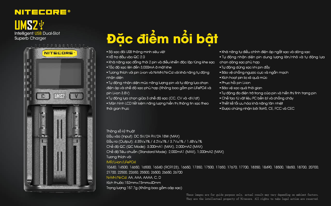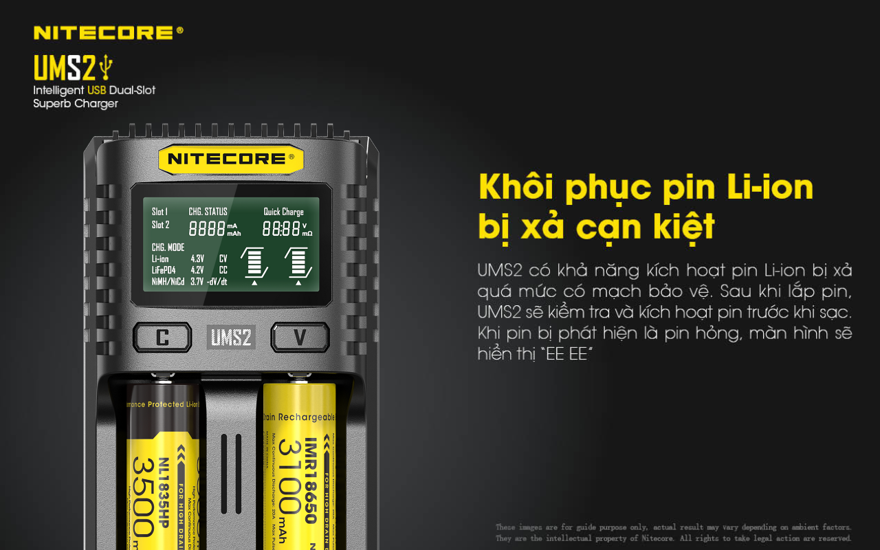 Sạc NITEOCRE UMS2 co thể cài đặt sạc thủ công