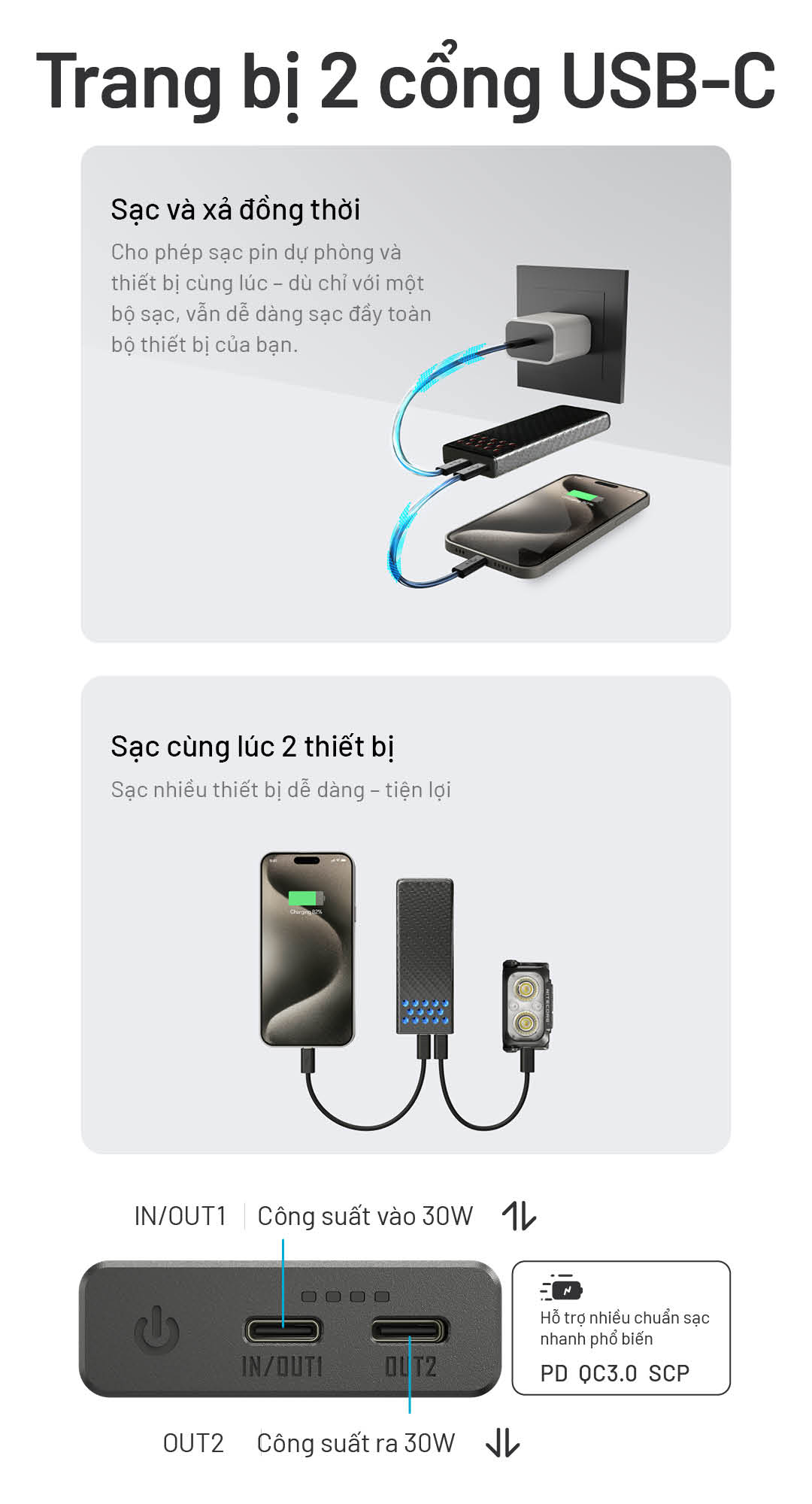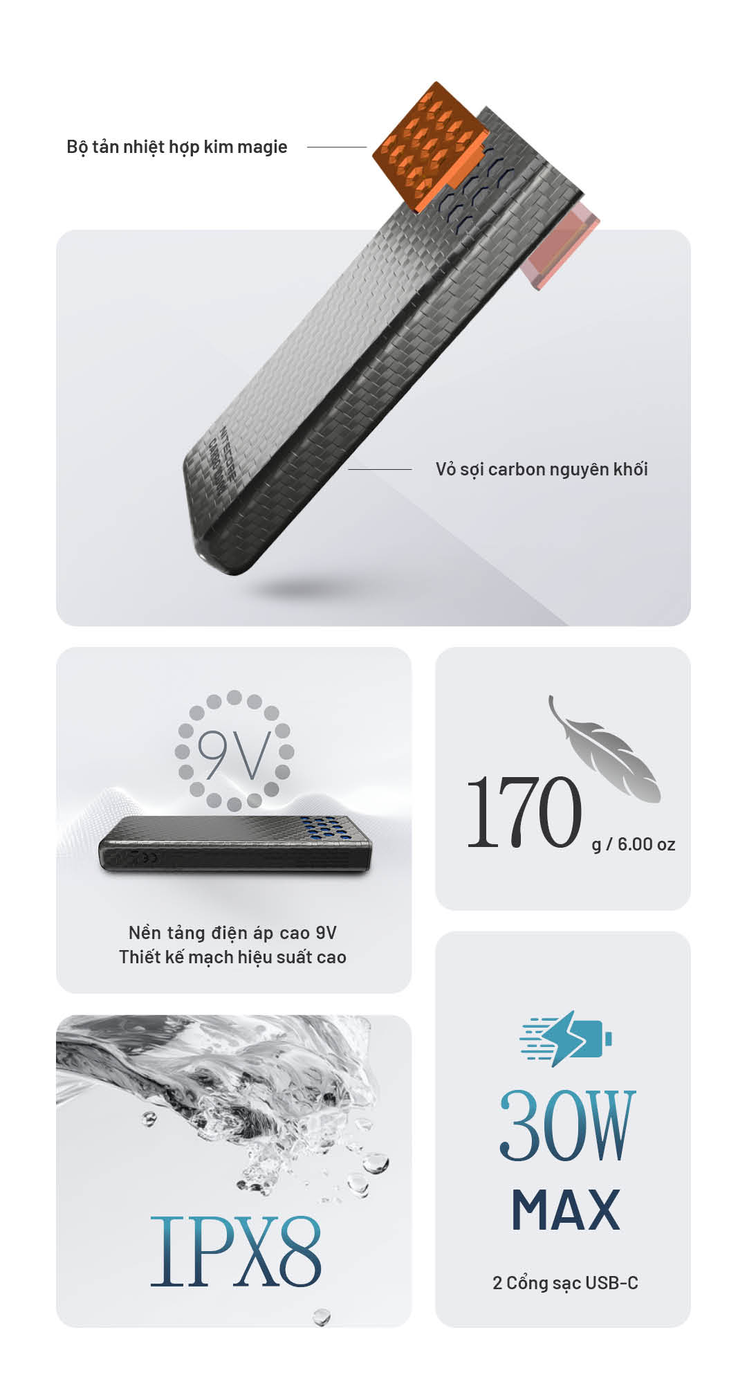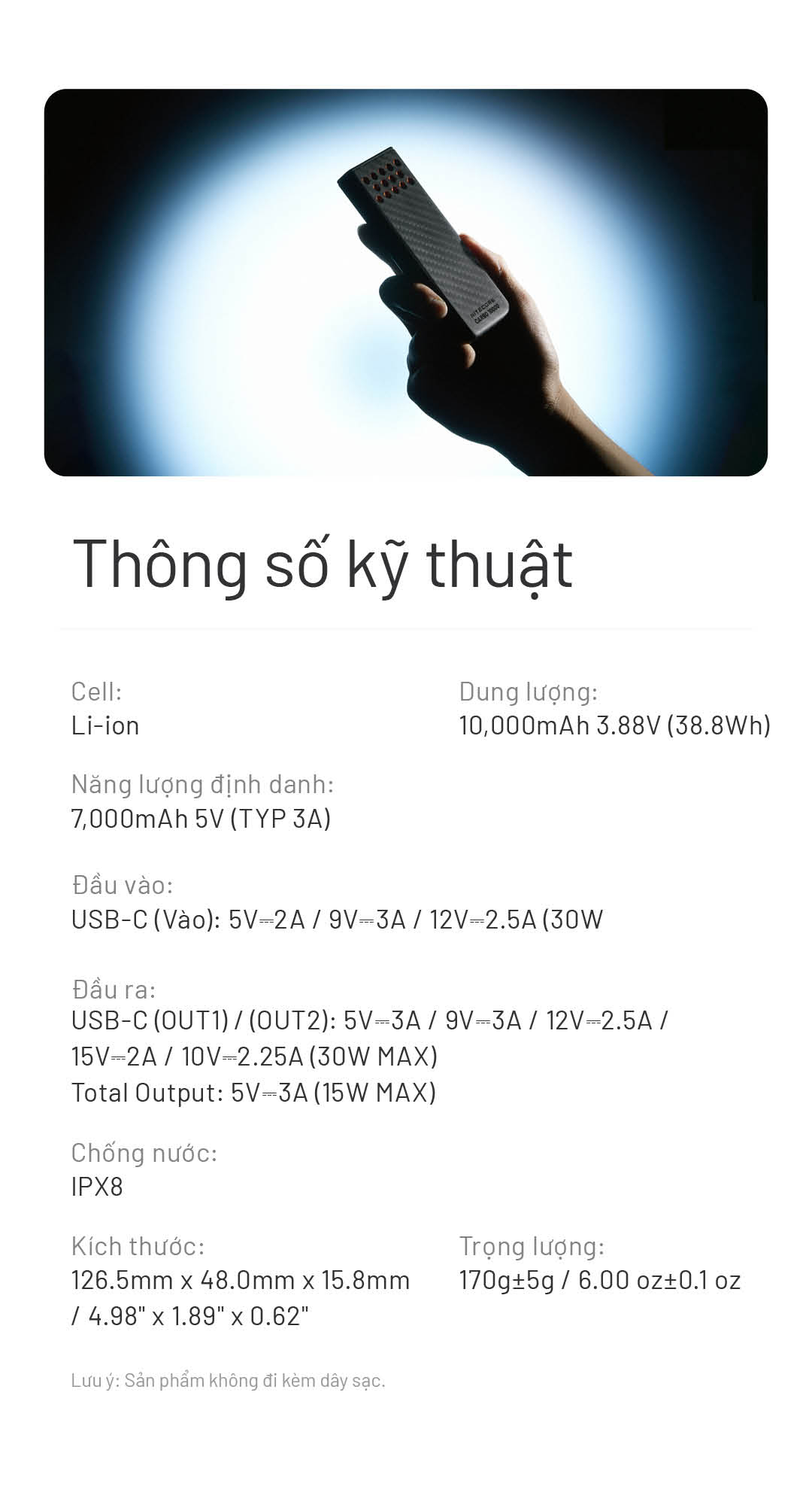 Sạc dự phòng NITECORE CARBO 10000 Gen2 là lựa chọn hàng đầu cho người dùng yêu thích hoạt động ngoài trời. Với khả năng sạc nhanh 30W hai chiều (IN/OUT), vỏ ngoài bằng sợi carbon cao cấp và tản nhiệt bằng hợp kim magie, sản phẩm không chỉ chịu được điều kiện khắc nghiệt mà còn đảm bảo hiệu suất ổn định trong mọi tình huống