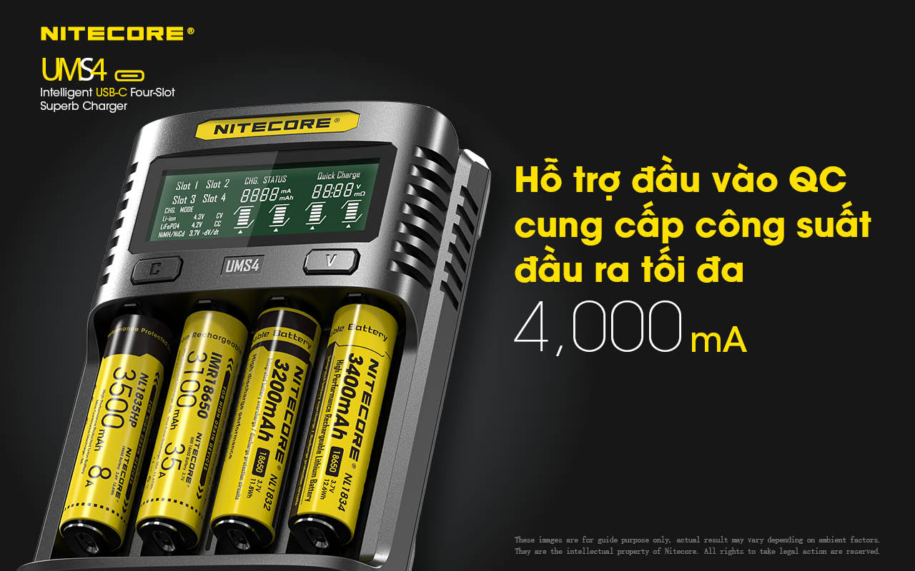 Sạc Nitecore UMS4 làm từ nhựa PC chống cháy nổ