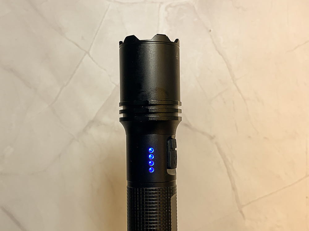 + KLARUS A1 có 4 LED báo pin: 4 nấc sáng xanh : 75 - 100 %/ 3 nấc sáng xanh : 50 - 75 % / 2 nấc sáng xanh : 25 - 50 % / 1 nấc sáng xanh : < 25 % . LED báo pin hiển thị 5 giây sau khi bật đèn