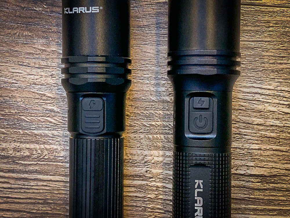 Một số cải tiến trên công tắc của Klarus A1 PRO (bên trái)