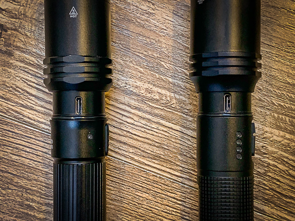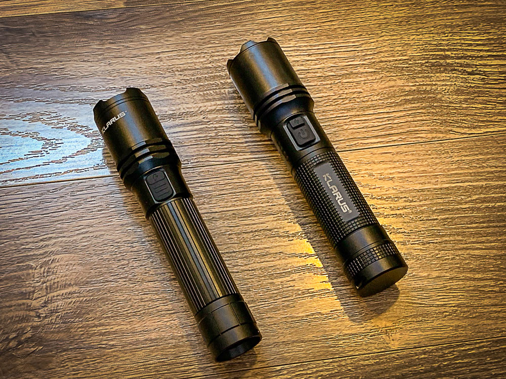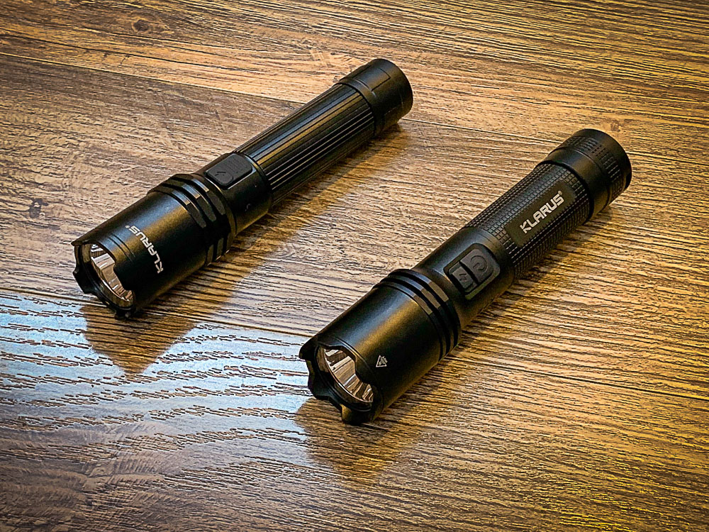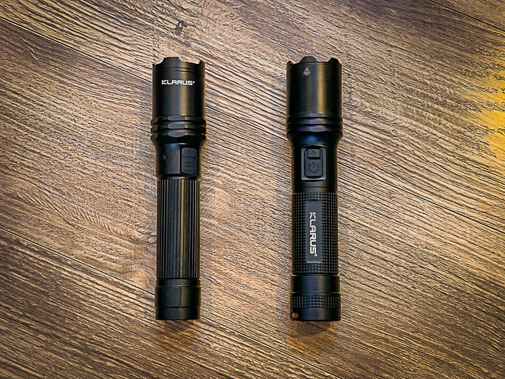 Vỏ đèn dày dặn và cứng cáp (Klarus A1 Pro bên trái)