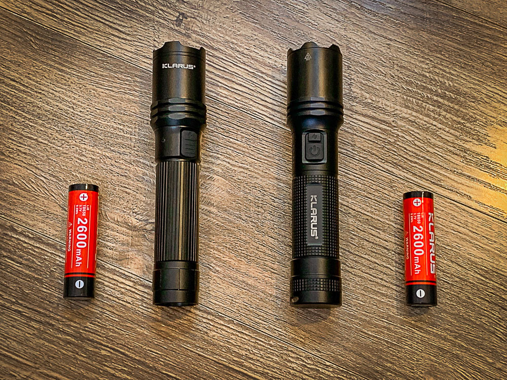 Tổng thể đèn và pin sạc 2600mAH đi kèm (Klarus A1 Pro bên trái)