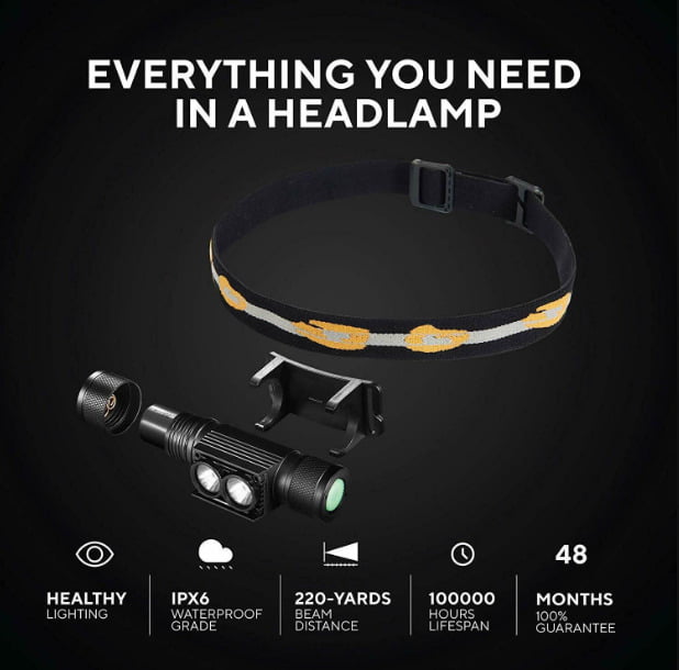 Cao (1200 lumens) - 3 giờ Thấp (200 lumens) - 6 giờ 2 chế độ nhấp nháy - SOS Độ sáng 50 - 1200 lumens: 100 - 3 giờ |
