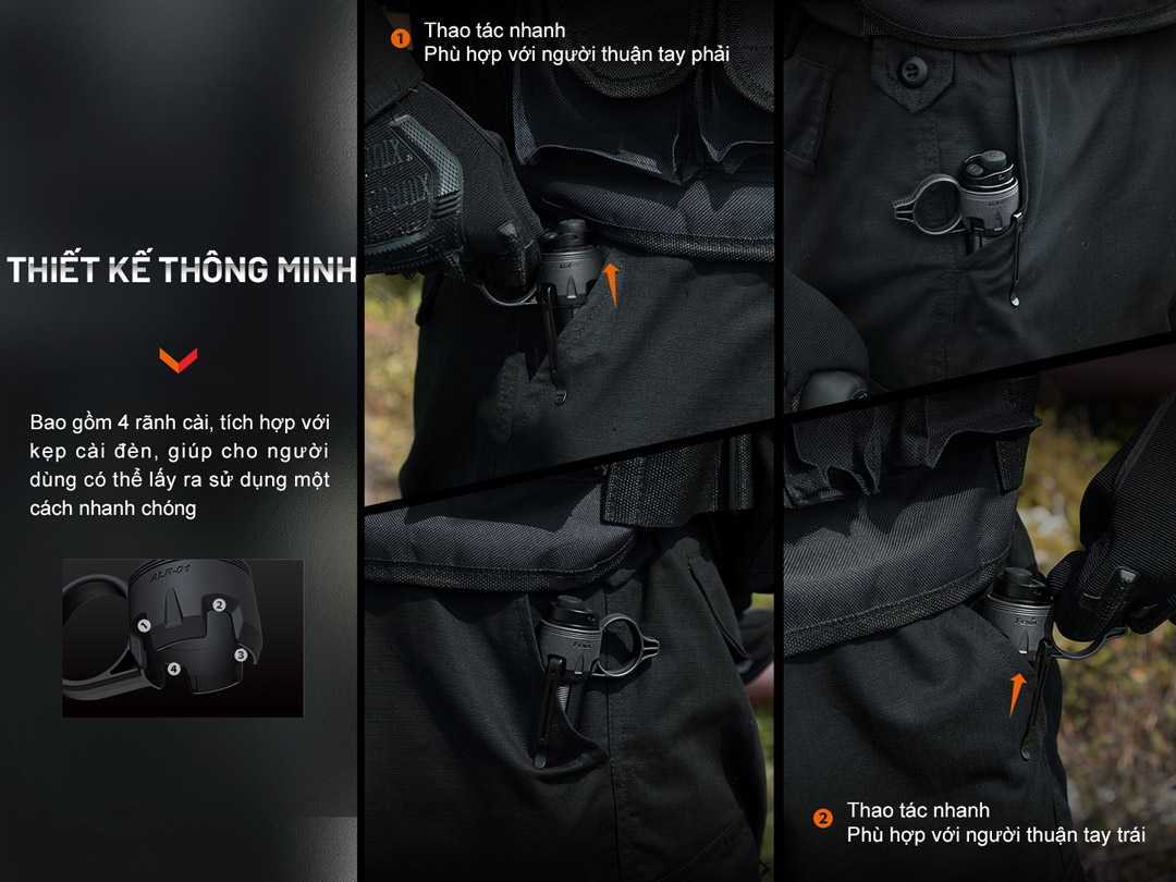 Vòng đèn pin tác chiến Fenix ALR-01 thiết kế phù hợp với hầu hết các đèn pin tác chiến của Fenix với độ khít và các rãnh trên vòng giúp giữ kẹp cài đèn mà không cần phải tháo kẹp như các thương hiệu khác. Sử dụng dễ dàng kể cả khi đeo găng tay, hỗ trợ linh hoạt trong tình huống tá-c chi-ến